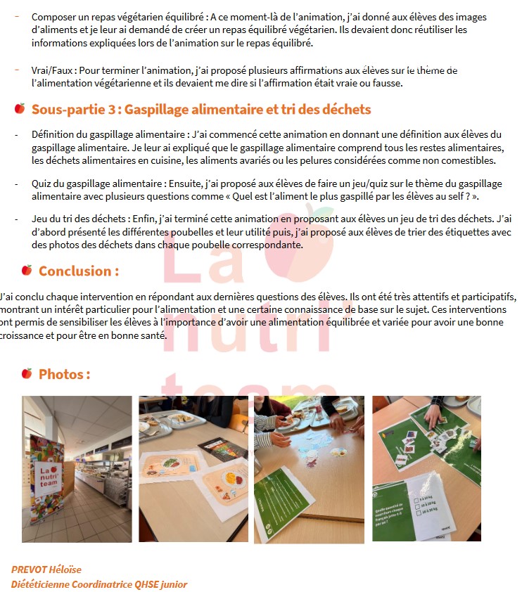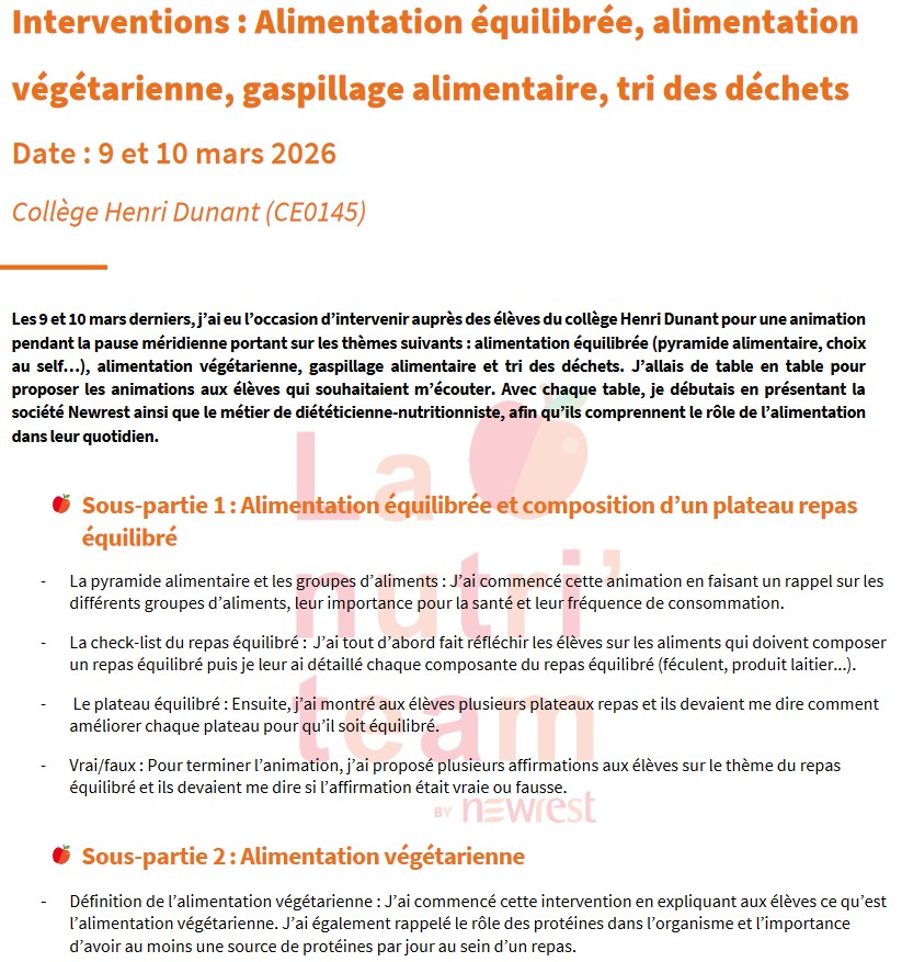 Intervention d'une diététicienne sur l'alimentation équilibrée