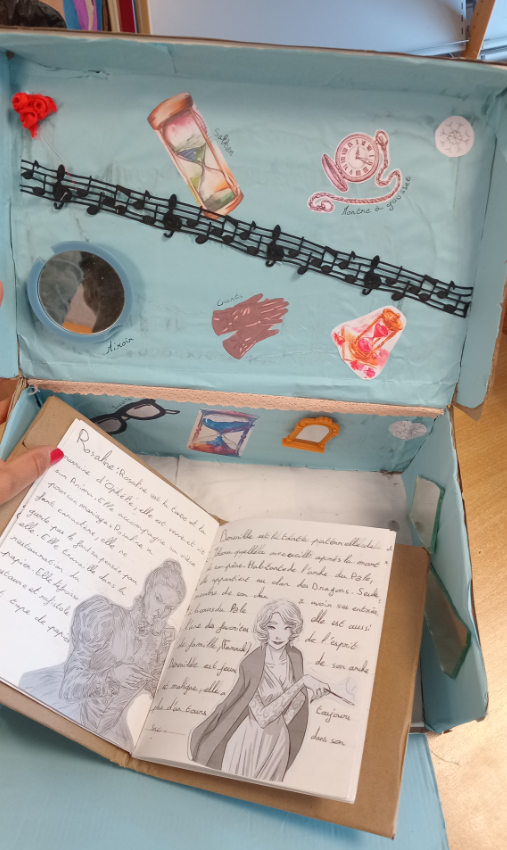 Après lecture d'un livre de la liste, les élèves devaient créer une boite sur l'univers du livre : mots clés, personnages, lieux...