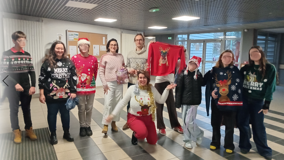 Des élèves et professeurs avaient joué le jeu en s'habillant avec leur pull de Noël les plus moches :