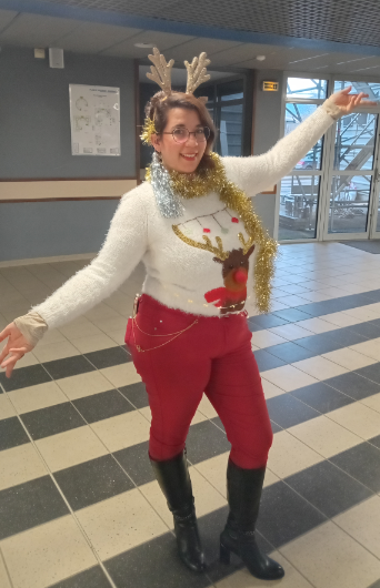 La palme a été décernée à Claire, notre mère Noël de la Vie Scolaire pour son habit haut en couleurs !