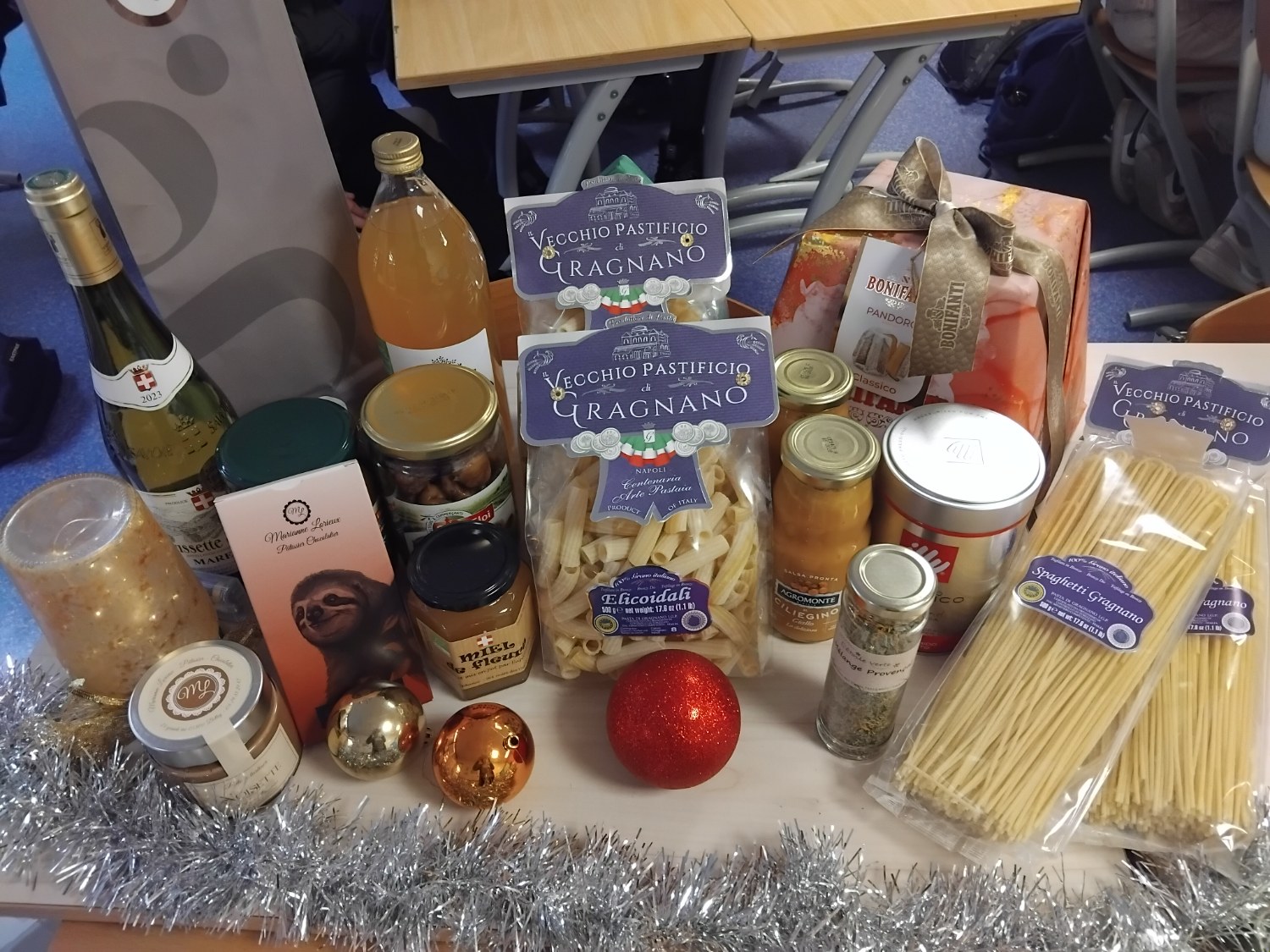Ces personnes de la Grille d'Hugo L. en 6ème A et Lisy F-B en 5ème C remportent un panier garni dont la composition est :