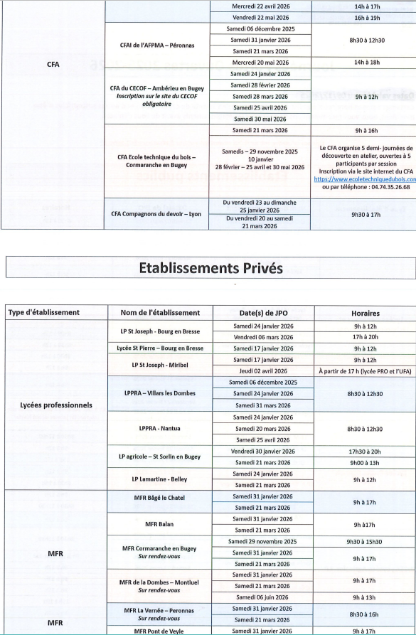Journées Portes Ouvertes du secteur